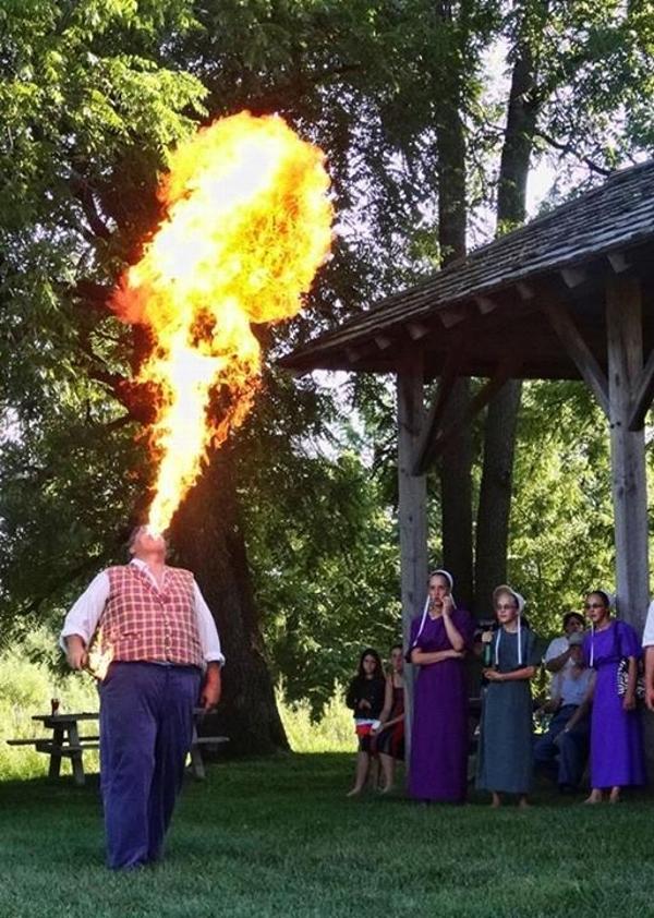 Armed with a degree in Opera Performance from THE Ohio State University, a love of history, and an ability to draw the attention of everyone in the room, - Eric set out to demonstrate not only the musical entertainment of early America. But that focus would quickly branch out to show-off … that is, to demonstrate the other entertainments that existed in early America. It wouldn’t be long before the fire-breathing, opera singing, fast talking, quick-witted, swindling escompteur had made a name for himself on the reenacting circuit.