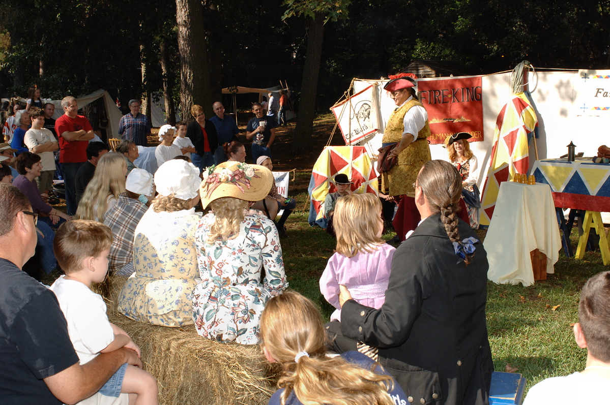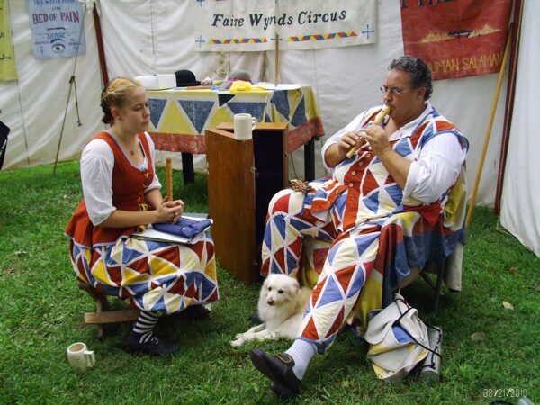 Over the years, Faire Wynds expanded to include not only the 18th Century circus, but a 19th century Medicine Show, a Flea Circus, aptly titled ‘Virginia’s Vermin’, a Cabinet of Curiosities, and Scoundrel’s Alley. Eric's goal was always to ‘educate, amuse, and entertain’, and rarely did a member of the public leave his presence without having experienced at least one of those things.